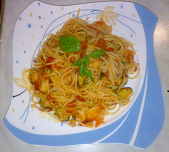 BRODETTO DE FRUTAS DEL MAR A LA ITALIANATiempo: 1 1/2 HoraDificultad : medianaEn este plato elaborado con un gran números de pescados de Mar, se reunen también tomates, pimientos verde, ajo y aceite de oliva. Todo ellos le confiere los sabores de sol. De fácil realización, ofrece la ventaja de admitir variaciones a tenor de la oferta de mercado o de preferencias personales.I N G R E D I E N T E S